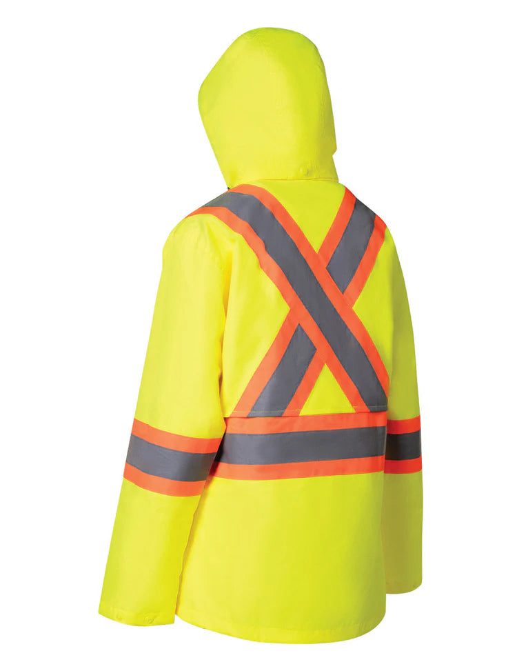 Forcefield Women's Hi Vis Safety Rain Jacket with Snap-Off Hood